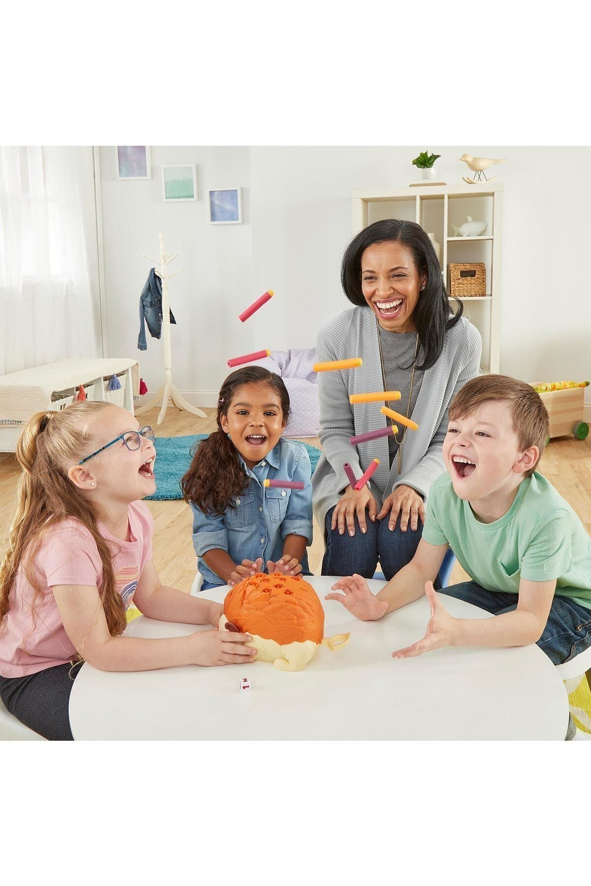 Bakalım kim kirpiye dartları fırlattıracak? 4 yaş ve üzeri çocuklara yönelik olan, kolayca oynanan Porcupine Pop, eğlenceyi merakla birleştiriyor. Zarı atın, zardaki sayı kadar kirpinin burnuna bastırın ve dartları fırlatacak mı görün! Fırlatırsa dartlar her yere uçuşur ve oyun dışı kalırsınız! Dartları fırlatmamasını sağlayan tek oyuncu olursanız oyunu kazanırsınız! Çocuklar, oyunu farklı bir şekilde de oynayabilir ve kirpiye ilk dartı fırlattıran oyuncu da oyunu kazanabilir. Ya da başka bir oyunda, her bir dart rengine puan verilir ve kirpi dartları fırlattığında oyuncular, mümkün olduğunca çok dart toplamaya çalışır; en yüksek puanı olan oyuncu oyunu kazanır. İçindekiler: kirpi oyun ünitesi, 9 dart, oyun zarı ve oyun kılavuzu.
